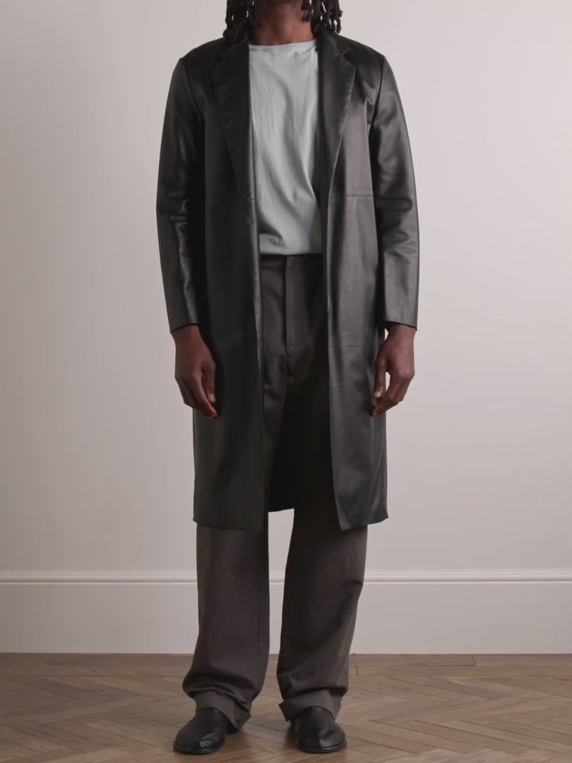 ALCAPONE Men Long Leather Coat